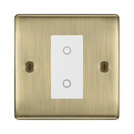 BG Antique Brass 2 Gang Custom Switch 1x 2 Way Switch 1x Secondary Touch Dimmer White Inserts