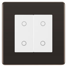 BG Nexus Screwless Matt Black Quad Secondary Touch Dimmer Switch Black Inserts FFBTDS4B BG secondary trailing edge touch dimmer that controls light levels and sets mood. Must be used in the same circuit as a master touch dimme...