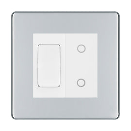 BG Polished Chrome Screwless 2 Gang Custom Switch 1x 2 Way Switch 1x Secondary Touch Dimmer Grey Inserts Please note that this switch will come in a Euro Module format. You will be sent the following parts all supplied by BG:...