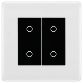 BG Polished Chrome Screwless 2 Gang Custom Switch 1x 2 Way Switch 1x Secondary Touch Dimmer Black Inserts Please note that this switch will come in a Euro Module format. You will be sent the following parts all supplied by BG...