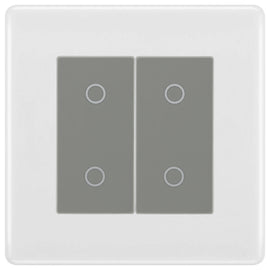 BG Nexus White Moulded Double Secondary Touch Dimmer Switch - Grey Insert BG secondary trailing edge touch dimmer that controls light levels and sets mood. Must be used in the same circuit as a master touch dimmer. Dimmer mo...