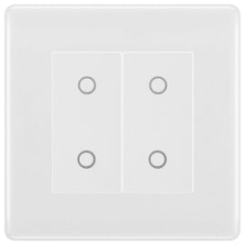 BG Polished Chrome Screwless 2 Gang Custom Switch 1x 2 Way Switch 1x Secondary Touch Dimmer White Inserts Please note that this switch will come in a Euro Module format. You will be sent the following parts all supplied by BG...