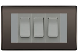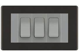 BG Black Nickel Screwless 3 Gang Intermediate Light Switch Custom Grid - Grey Insert