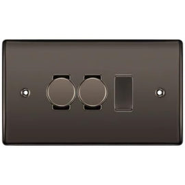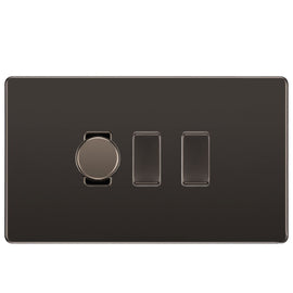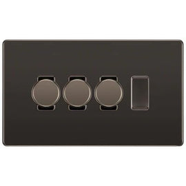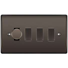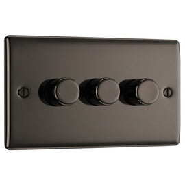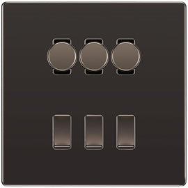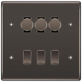 BG Nexus Black Nickel 3 Gang Switch 2x Trailing Edge LED Dimmer 1x 1 or 2 Way Custom Grid
