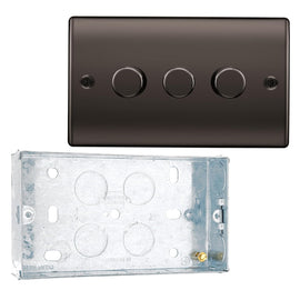 BG Nexus Black Nickel 200W 2 Way Trailing Edge Triple Dimmer Switch NBN83 and 25mm Steel Back Box