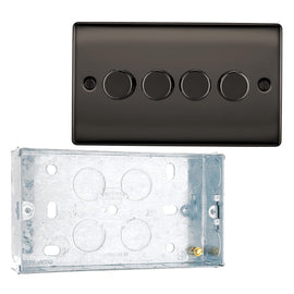 BG Nexus Black Nickel 200W 2 Way Trailing Edge Quadruple Dimmer Switch NBN84 and 25mm Steel Back Box
