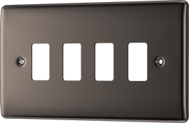 BG Nexus Black Nickel 4 Gang Intermediate Light Switch Custom Grid - Grey Insert