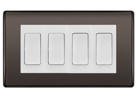 BG Black Nickel Screwless 4 Gang Intermediate Light Switch Custom Grid - White Insert