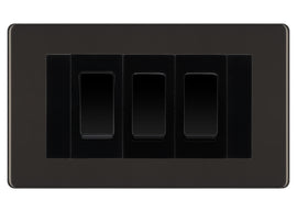 Triple Light Switch Plate (3 Gang, 2 Way) Black Nickel 10A