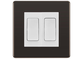 BG Nexus Black Nickel 2 Gang Intermediate Light Switch Custom Grid – White Insert