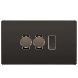 BG Black Nickel Screwless 2 Gang Switch 1x Trailing Edge LED Dimmer 1x Intermediate Switch