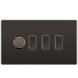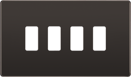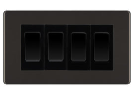 BG Black Nickel Screwless 4 Gang Intermediate Light Switch Custom Grid - Grey Insert