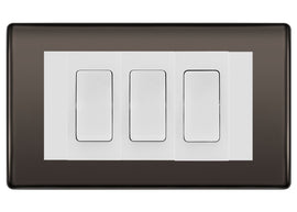 BG Black Nickel Screwless 3 Gang Intermediate Light Switch Custom Grid - White Insert