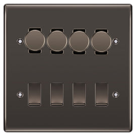 BG Nexus Black Nickel 4 Gang Intermediate Light Switch Custom Grid - Black Insert