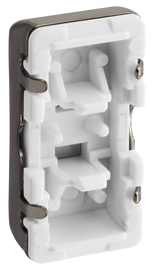 2 gang, features secure and easy "clip on, clip off"front plate...