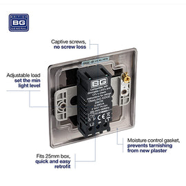 BG NBN81P Nexus Metal 1 Gang, 2 Way, 400W Dimmer Switches - Black Nickel