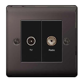 Nexus Metal Black Nickel Double 1x TV 1x FM Diplex Socket Outlet