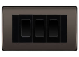 BG Nexus Black Nickel 3 Gang Intermediate Light Switch Custom Grid - Black Insert