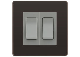 BG Nexus Black Nickel 2 Gang Intermediate Light Switch Custom Grid – Grey Insert