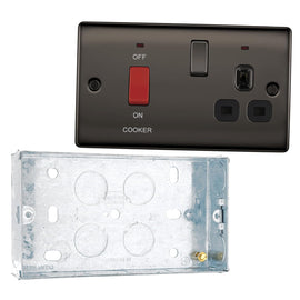 BG Nexus Black Nickel 45A DP Switch 13A Socket Neon NBN70B and 25mm Steel Back Box