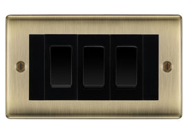 BG Nexus Antique Brass 3G Switch 2x Intermediate 1x 2 Way Switch - Black Insert Upgrade your lighting setup with this premium BG Nexus Antique Brass 4-Gang Light switch assembly — the perfect blend of performance and style. T...