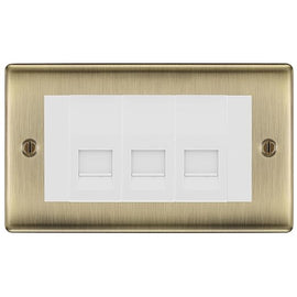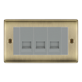 BG Nexus Antique Brass 3 Gang RJ11 Telephone Socket Euro Module - Grey Insert RJ11 Telephone Socket: Suitable for standard analogue telephone line connections Euro Module System: RJ11 modules clip securely into the Euro pla...
