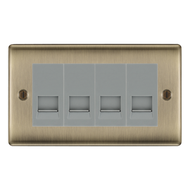 BG Nexus Antique Brass 4 Gang RJ11 Telephone Socket Euro Module - Grey Insert RJ11 Telephone Socket – Suitable for standard analogue telephone line connections Euro Module System – RJ11 modules clip securely into the Euro p...