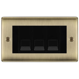 BG Nexus Antique Brass 3 Gang RJ11 Telephone Socket Euro Module - Black Insert RJ11 Telephone Socket: Suitable for standard analogue telephone line connections Euro Module System: RJ11 modules clip securely into the Euro pl...