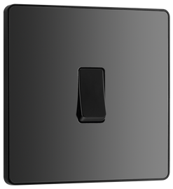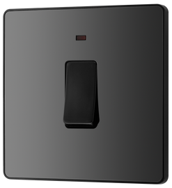 Black Chrome Evolve 1 Gang 20A 16AX Intermediate Light Switch - Black Insert