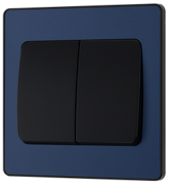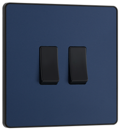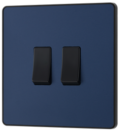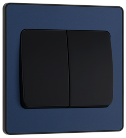 Matt Blue Evolve 2 Gang 20A 16AX 2 Way Light Switch - Black Insert