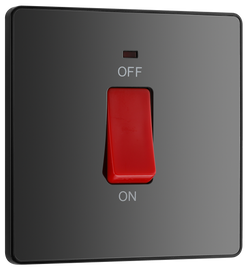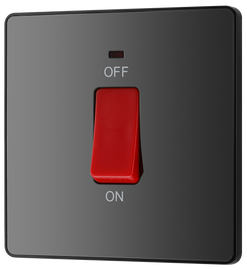 Black Chrome Evolve 45A 2 Pole Large Plate LED Switch - Black Insert