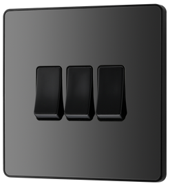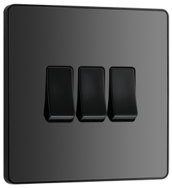 Black Chrome Evolve 3 Gang 20A 16AX 2 Way Light Switch - Black Insert