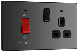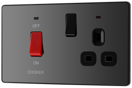 Black Chrome Evolve 45A 2 Pole Cooker Control Unit 13A Switched Socket - Black Insert