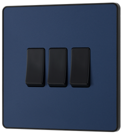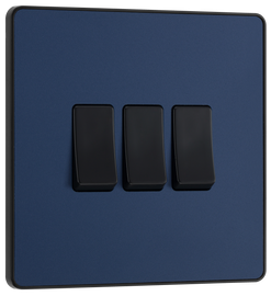 Matt Blue Evolve 3 Gang 20A 16AX 2 Way Light Switch - Black Insert