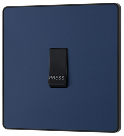 Matt Blue Evolve 10AX 1 Way Press Switch - Black Insert