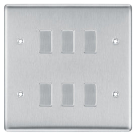BG Nexus Brushed Steel 6G Intermediate Custom Grid Light Switch with Back Box Included