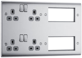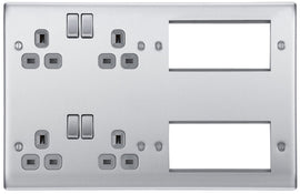 BG Nexus Metal 2x 2G Socket 13A + 2x 4 Module Aperture - Grey Insert - Brushed Steel