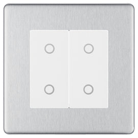 BG Nexus Screwless Brushed Steel Quad Secondary Touch Dimmer Switch White Inserts FBSTDS4W