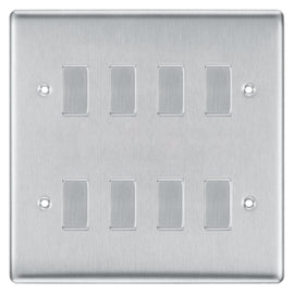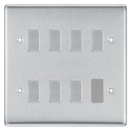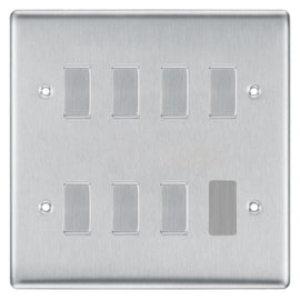 BG Brushed Steel 8 Gang Intermediate Custom Grid Light Switch with Back Box Included