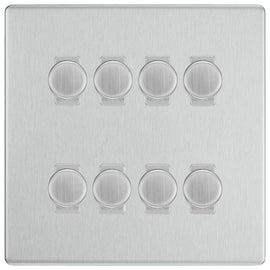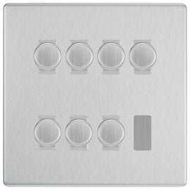 BG Brushed Steel Screwless 8 Gang 2 Way Trailing Edge Dimmer LED Custom Grid