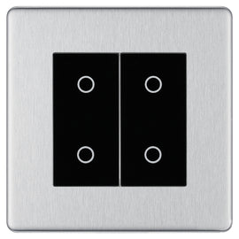 BG Nexus Screwless Brushed Steel Double Master Touch Dimmer Switch Black Inserts