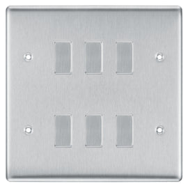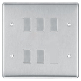 BG Brushed Steel 6 Gang 2 Way Custom Grid Light Switch with Back Box Included