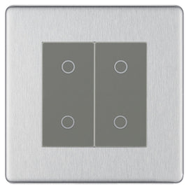 BG Nexus Screwless Brushed Steel Quad Secondary Touch Dimmer Switch Grey Inserts FBSTDS4G