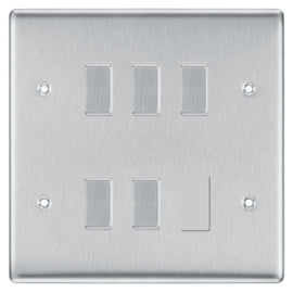 BG Brushed Steel 5 Gang Intermediate Custom Grid Light Switch Back Box Included
