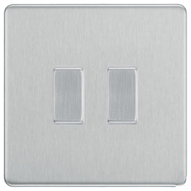 BG Nexus Brushed Steel Screwless Flatplate 2 Gang Intermediate Light Switch Custom Grid Switch