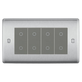 BG Nexus Brushed Steel Quad Secondary Touch Dimmer Switch Grey Inserts NBSTDS4G