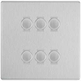 BG Brushed Steel Screwless 6 Gang 2 Way Trailing Edge Dimmer LED Custom Grid