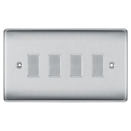 BG Brushed Steel 4 Gang Intermediate Custom Grid Light Switch