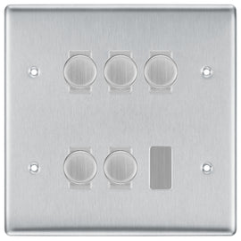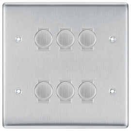 BG Brushed Steel 6 Gang 2 Way Trailing Edge Dimmer LED Compatible Custom Grid
