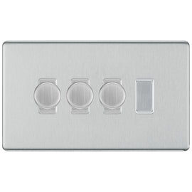 BG Brushed Steel Screwless 4 Gang Switch 3x Trailing Edge LED Dimmer 1x 2 Way